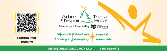 Vous organisez une activité au profit de l'Arbre de l'espoir? Envoyez-nous les détails à info@fondationdumont.ca ou identifiez-nous dans vos publications sur les réseaux sociaux !